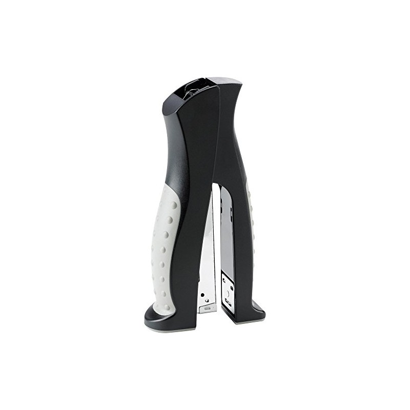 - Ergonomic stand-up design uses less desk space than conventional desktop staplers