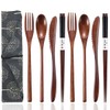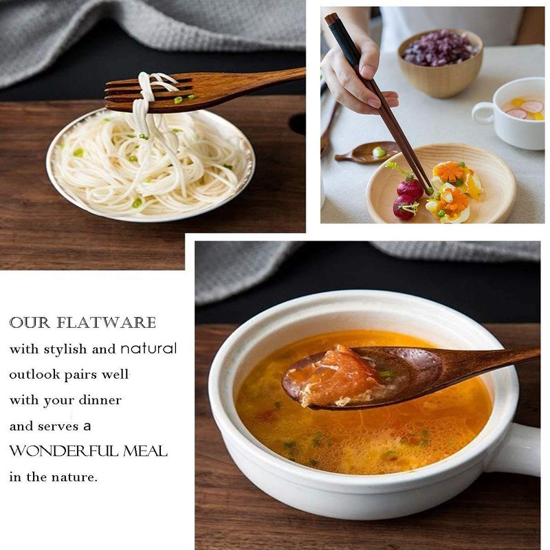 - ✿ The 8-Piece Wooden Utensils for Eating: Comes with 2 Pcs wooden Soup Spoons & 2 Pcs wooden reusable Forks & 2 Pcs Knives for eating & 2 Pcs wooden reusable Chopsticks, Great for get-together, office lunches, formal or informal meals; Our reusable cutlery set with stylish and natural outlook pairs well with your dinner and serves a wonderful meal in the nature.