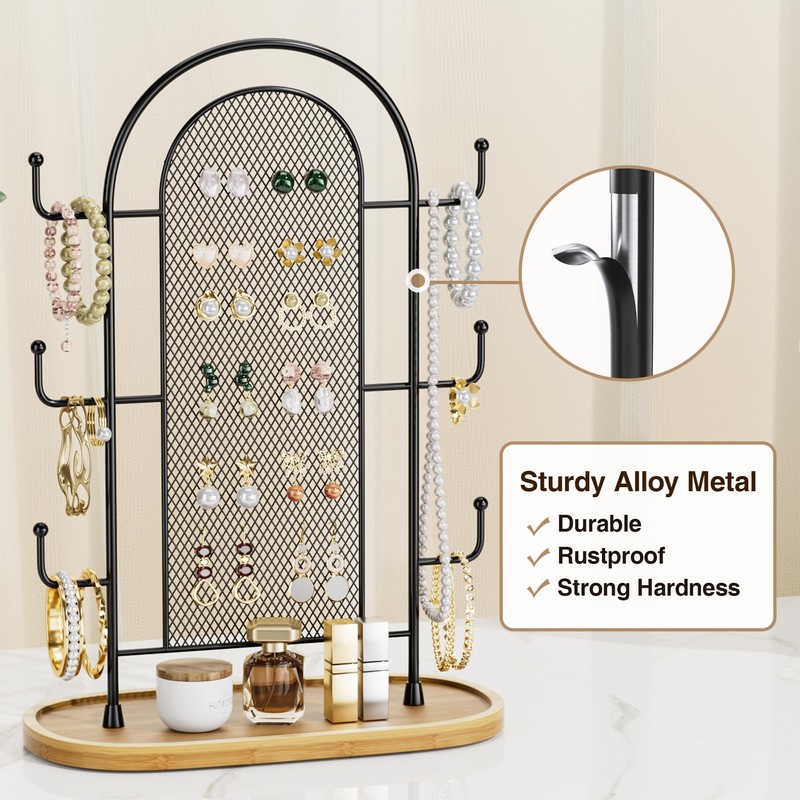 - High-Quality Material: The standing part of the earring tree is crafted from premium metal with a rust-resistant coating, while the base is made of natural bamboo, ensuring stability, durability, and fade resistance. It also comes with four anti-slip protective bottom pads;