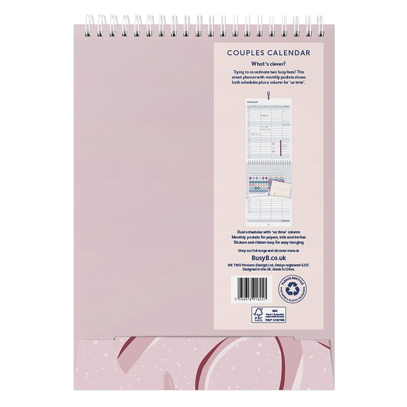Busy B 2026Wall Calendar for Couples - Pink Ribbon Slim Design with Dual Schedules, Monthly Pockets & Stickers -Hanging Calendar for Shared Planning, Birthdays & Important Dates - Jan to Dec