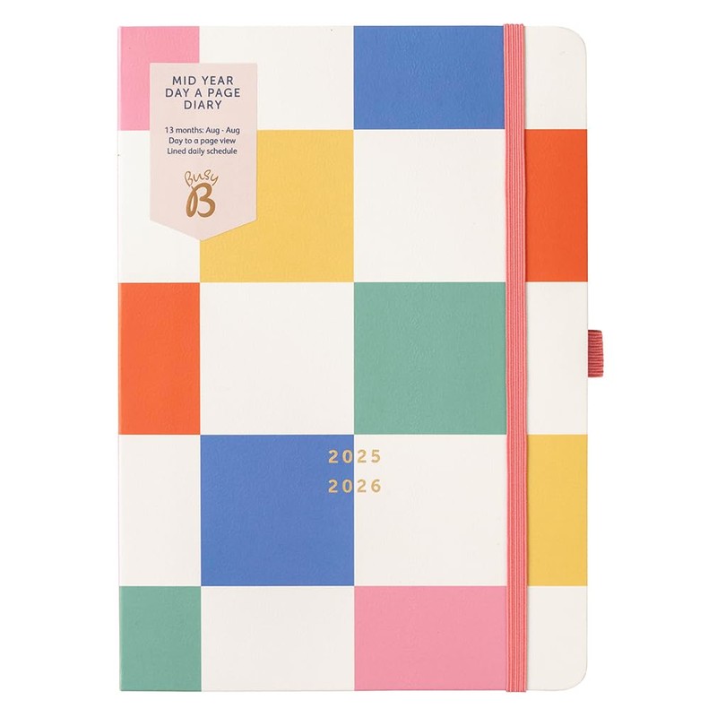 - MID YEAR DAY A PAGE ACADEMIC DIARY - Make the academic year 2025 - 2026 your year to be beautifully organised with the Day a Page Diary from Busy B, featuring a soft multicoloured cover.