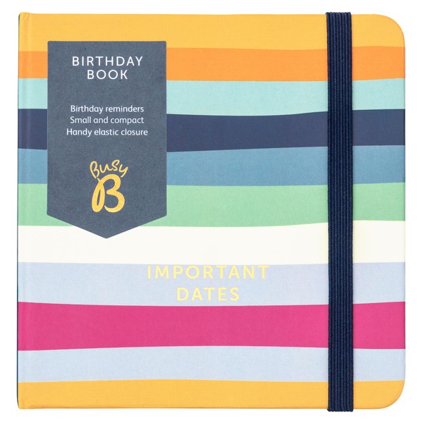 Busy B SS24 Birthday Book - Stripe with Birthday Reminders and Elastic Closure