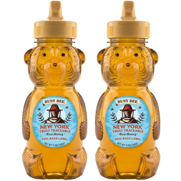 BUSY BEE Honey Bears, New York Raw Honey, 12 OZ (Pack of 2)