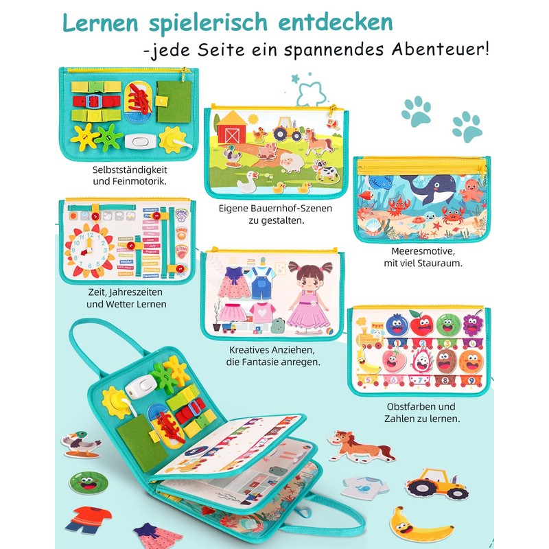 - Safe and durable motor skills toy educational toy: our Busy Board is made of carefully tested, odourless felt materials and high-quality craftsmanship. It is durable, withstands constant pull and pressure and offers your child long-lasting fun. Every detail is thoughtfully and securely attached, allowing parents confidence and children to play with worry-free.