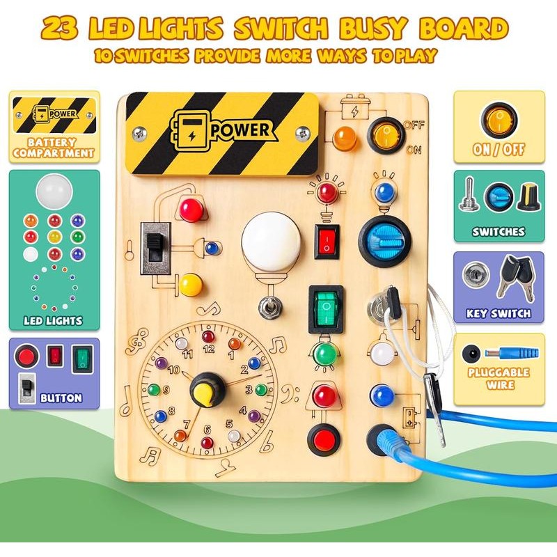 Busy Board,Montessori Toys for 1-3 Years Old, Wooden Toddler Toys, Sensory Travel Toys, Ideal Gift for 1+ Year Old Boys (Busy Board Plus V2) dealsforyoudays Learning Materials Infant:_Busy Board v3