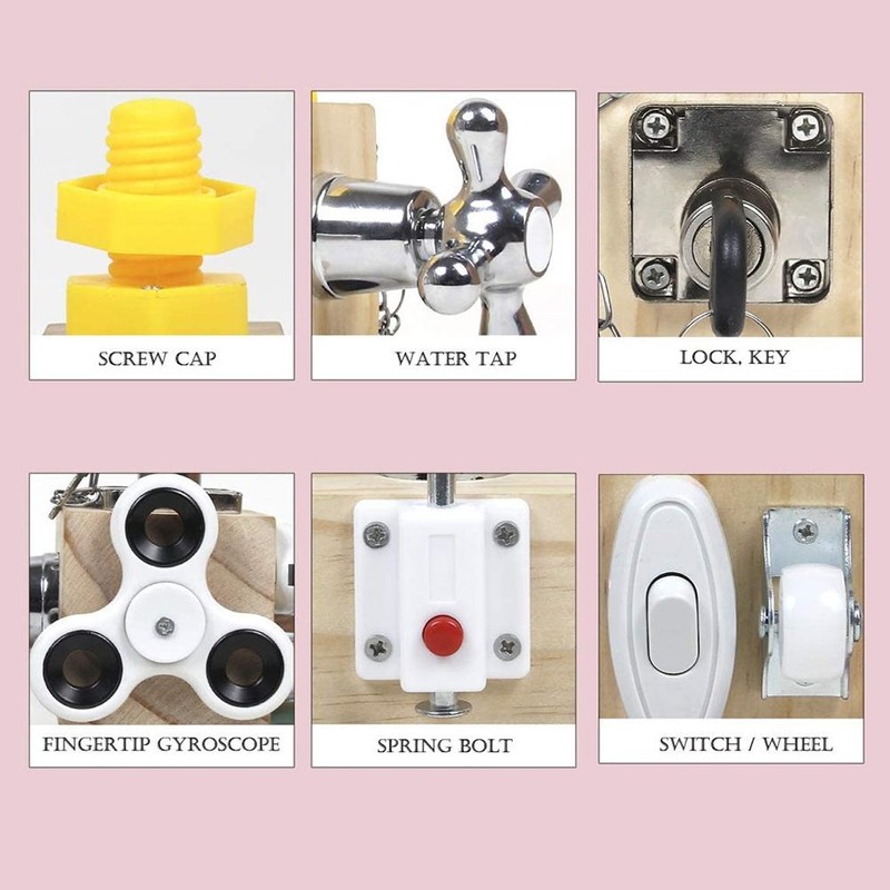 1、1. Explore toys: As children grow older, they will be curious about the world. This busy cube can satisfy the children's desire to explore safely, and at the same time alleviate the troubles of parents. 2、2. Learning education center: Through this busy cube, you can inspire your baby's enthusiasm for playing and learning, increase your knowledge of objects, and enter the world of numbers and moving parts when you are one year old. It can also bring many benefits, such as hand-eye coordination, fine motor skills, logical thinking and creativity. 3、3. Eco-friendly wooden toys: The busy cube is designed for babies, but it is also suitable for children with autism. The toy is made of high-quality, strong and durable wood. Excellent workmanship, no sharp edges and corners, and will not hurt your baby's skin. 4、4. Lightweight and portable: Each part of the toy is firmly fixed, and it is convenient to carry when going out or traveling by car. Children can participate with their parents to make the relationship more harmonious. 5、5. 7-in-1 cognitive toys. This ultra-compact wooden interactive toy includes: finger tops, spring bolts, switches, wheels, screw caps, faucets, wrenches/locks.