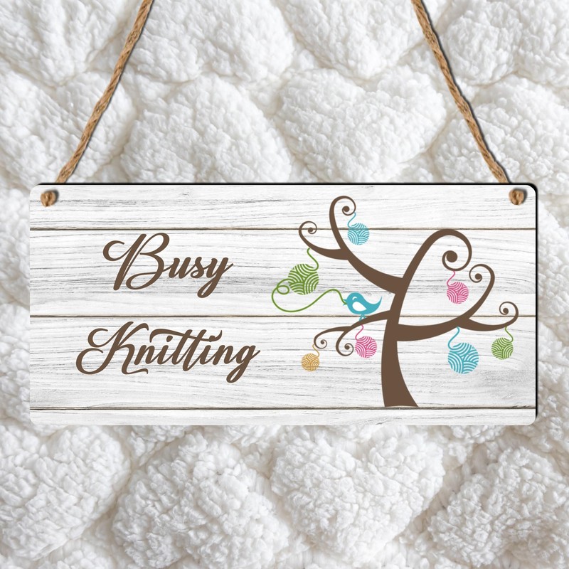 Looking for a thoughtful gift for a fellow knitter? This "Busy Knitting" sign is a unique and heartwarming present that any knitting enthusiast would cherish. Whether it’s for a birthday, holiday, or simply to show you care, this plaque is sure to bring a smile to their face.