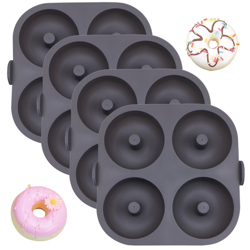 Butabeishy Silikon Donut Backform Set, 4 Stück, 4 Donuts pro Form, 21x20 cm, Grau