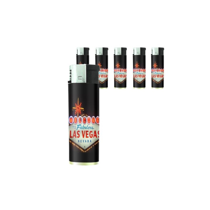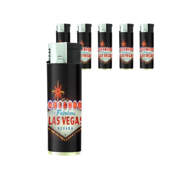 Butane Refillable Electronic Lighter Set of 5 Pieces Las Vegas Design-001