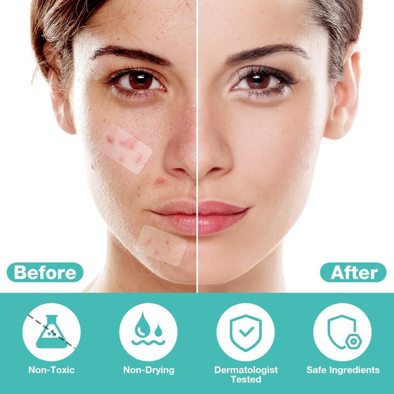 - 【SUPER STRONG PUS ABSORPTION, NO SCARS】The hydrocolloid material has upgraded pus absorption, quickly absorbs pus in whiteheads, and accelerates acne healing. The physical barrier prevents bacterial contamination, reduces the urge to squeeze acne, and reduces the risk of scarring and pigmentation from the source. There is no glue residue after tearing off the acne patch, which is gentle and non-irritating.
