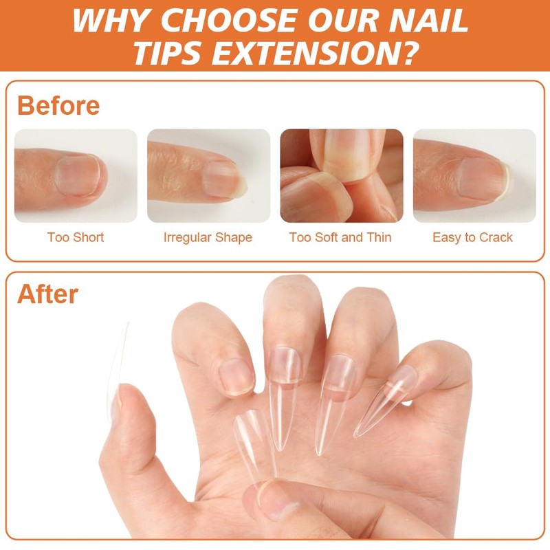 BUTBU Long Almond Nail Tips, 120PCS Soft Gel Full Cover Nail-Tip, Press on Fase Artificial Nails Tips, Clear Acrylic Nails Tips, 12 Sizes NAIL Extensions Kit for DIY Manicure Nail Art Salon