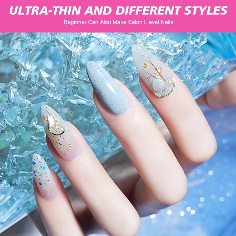 • 【ULTRA-THIN AND COMFORTABLE】Our nail art pieces are made of high-quality acrylic, which is a soakable gel material different from traditional ABS materials. It is softer and more breathable, lightweight and comfortable, no "tight feeling" when worn, durable and not easy to damage. Non-toxic and odorless, fully protect your nail health, let you be beautiful and at ease.