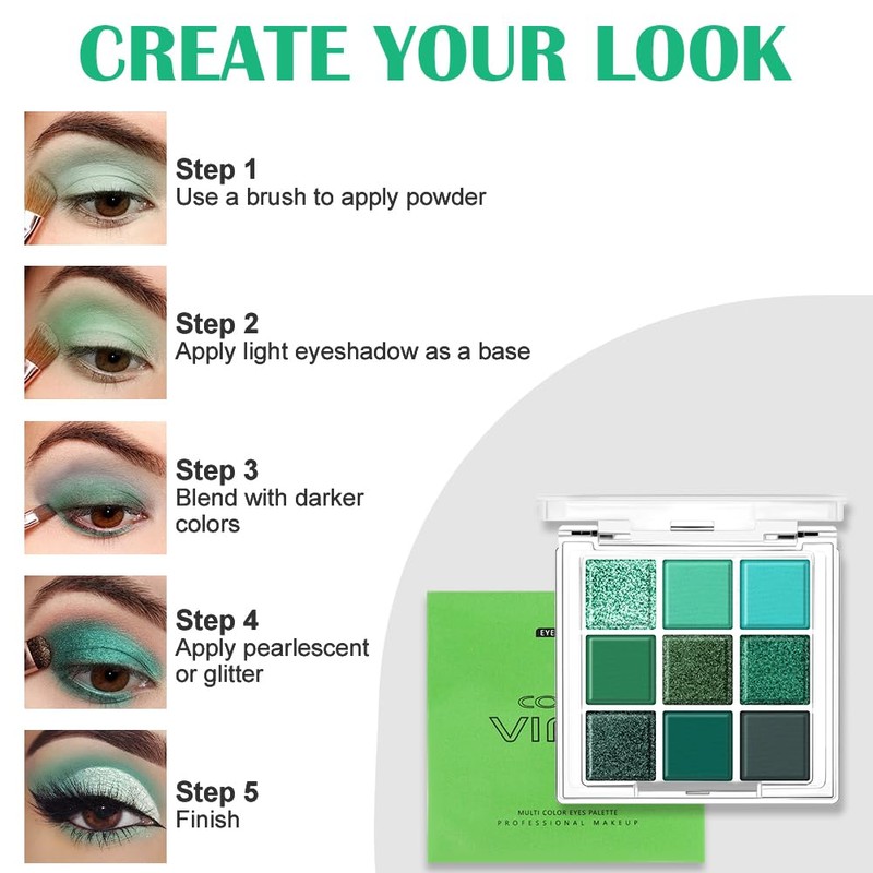 BUTBU Professional Makeup Eyeshadow Palette, with 9 Colours, Eyeshadow Palette, Matte and Shimmering, Make-Up Palette, Eyeshadow Green, Highly Pigmented Eyeshadow Palette, for Holiday and Everyday Use