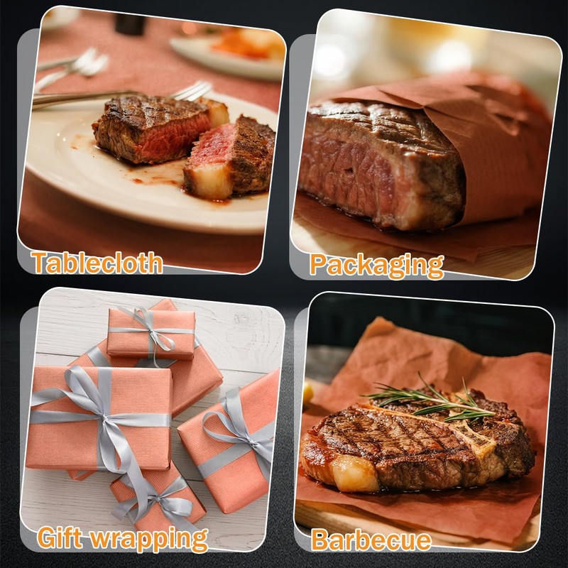 - High quality: super durable, thickened pink butcher paper stores meat juices, resists high temperatures, allows smoke and steam to escape and does not burn or tear during work. The meat is not grilled or steamed as with aluminium foil or roasting foil, which keeps the meat juicy and tender.