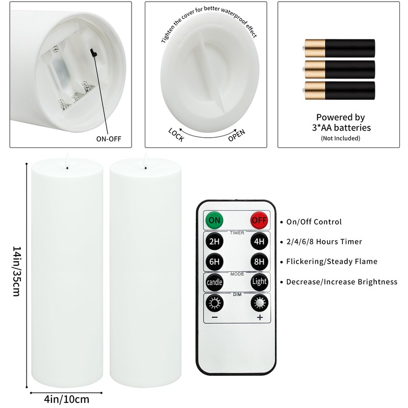 - 【Convenient Remote Control with Timer Function】Take full control of your outdoor candles using the included remote control. Easily adjust brightness, set timers, or effortlessly turn them on and off from a distance. This convenient feature adds a touch of convenience and simplicity to your lighting experience, ensuring effortless ambiance creation.
