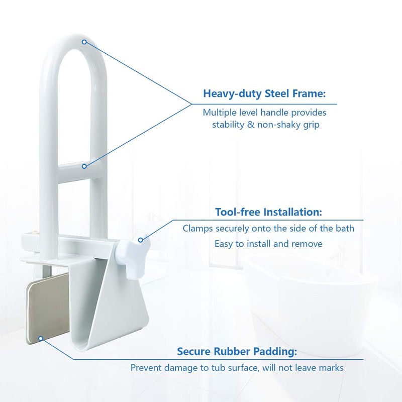 - ►【Safety Support】The bathtub safety rail provides support for individual when getting in and out of the bathtub. Ensuring safety and preventing injuries or falls. Especially for seniors, elderly and recovering patients after surgery.
