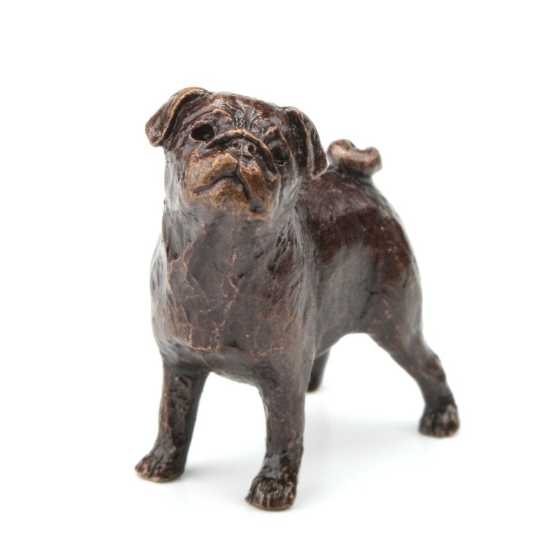 Butler & Peach Detailed Small Solid Bronze Pug