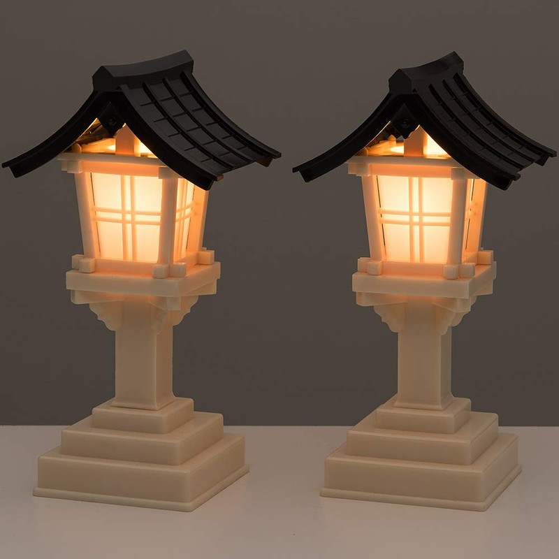 - Dimensions: Height 7.1 inches (18 cm) x Roof Width 3.5 inches (9 cm) / Material: Resin, Black Roof / Electronic: One pair of cords for 100 V electrical outlets / Cord Length: From lantern to outlet - Approx. 43.3 inches (110 cm), Between 2 lanterns - Approx. 19.7 inches (50 cm) / Note: No intermediate switches / Country of Manufacture: Made in Japan