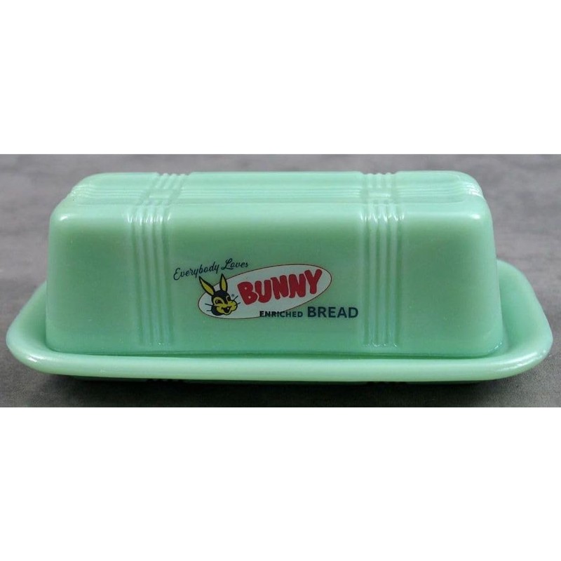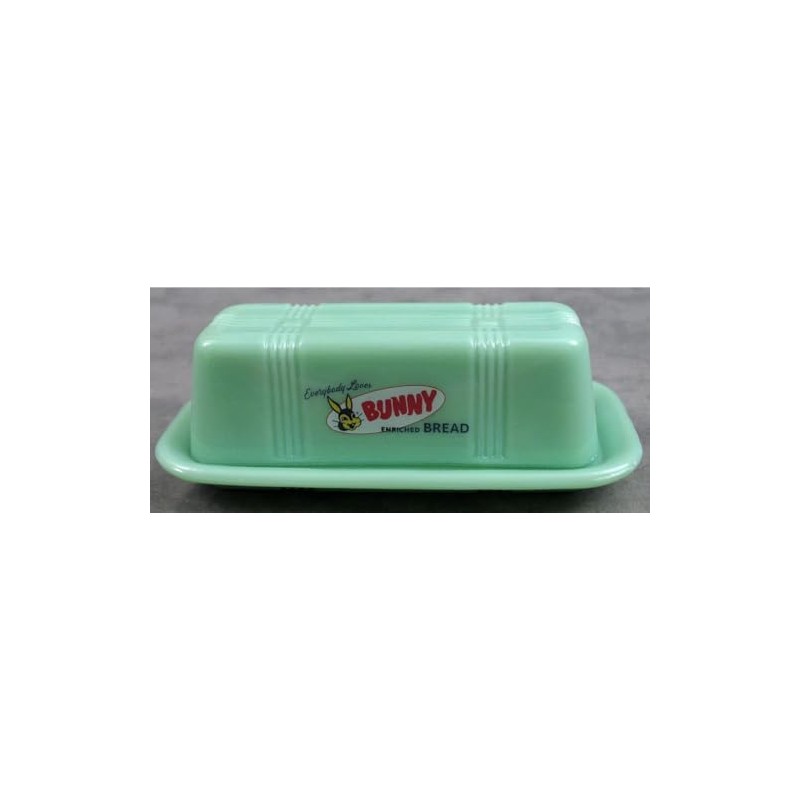Butterdish - 1-Stick Butter Dish - Imported (Jadeite Green w/Bunny Bread)