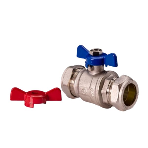 Butterfly Ball Valve 22mm Red & Blue Handle Compression Fitting