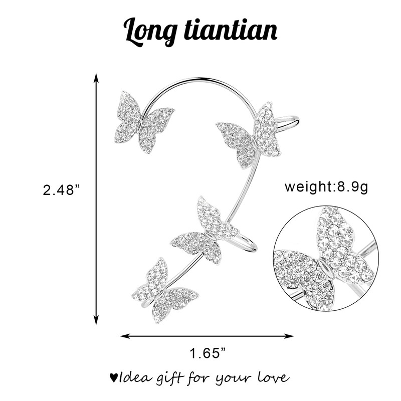 - BUTTERFLY EAR CUFF : The butterfly earring are made of high-quality alloy materials,with rhinestone inlaid on them,exquisite workmanship.Suitable for most women,and teenagers.