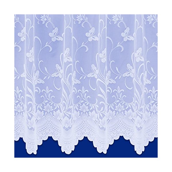 Butterfly Floral Trailing Leaf Pattern Net Curtains In White - Sold By The Metre (Drop: 160cm (63"))