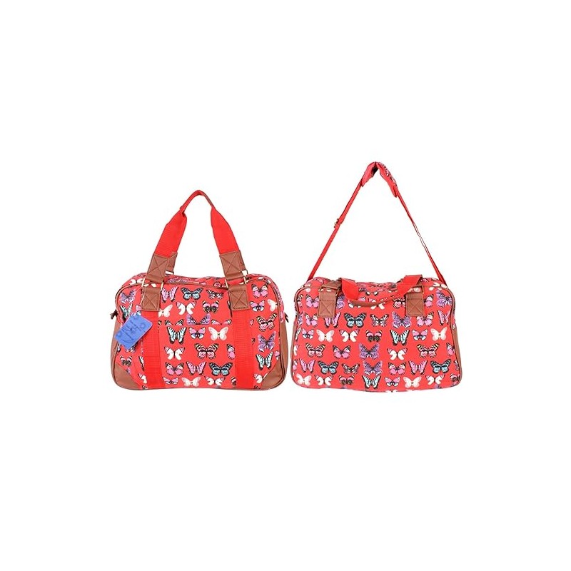 Butterfly patterned ladies women colourful canvas holdall bag Luggage shoulder Bag Travel Bag (RED)