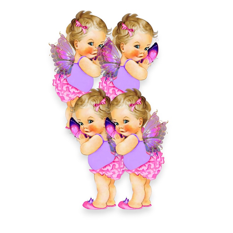 Butterfly Princess Baby Girl Cutouts, Garden Theme Decorations for Baby Shower, 1st Birthday Party, DIY Double-Sided Centerpiece (Blonde/Pink Lavender, 16"- 2 Left & 2 Right)