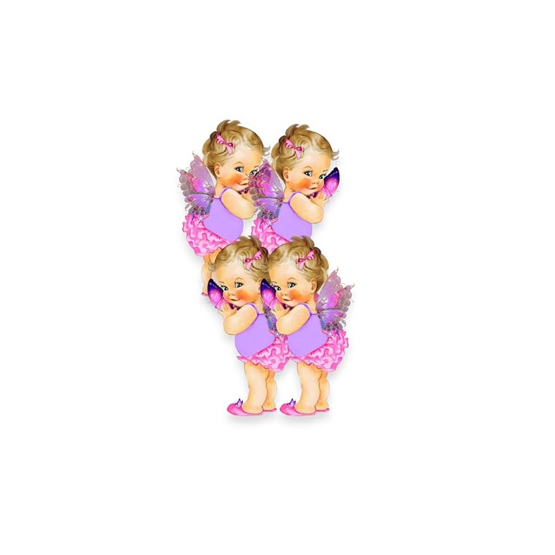 Butterfly Princess Baby Girl Cutouts, Garden Theme Decorations for Baby Shower, 1st Birthday Party, DIY Double-Sided Centerpiece (Blonde/Pink Lavender, 16"- 2 Left & 2 Right)