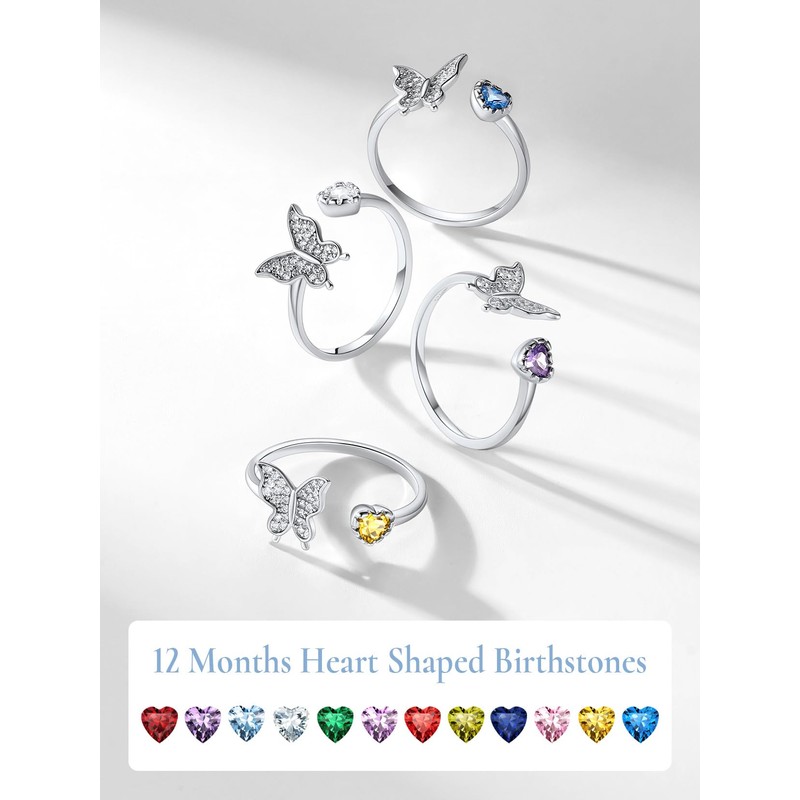 - 🦋Birthstone Ring Size - Heart crystal size: 4mm, the ring can adjust to 5-10 US size. It is a perfect adjustable rings for women. ☆Adjust the ring up and down, sterling silver metal is soft, don’t adjust frequently, it may cause the ring to bend or break.