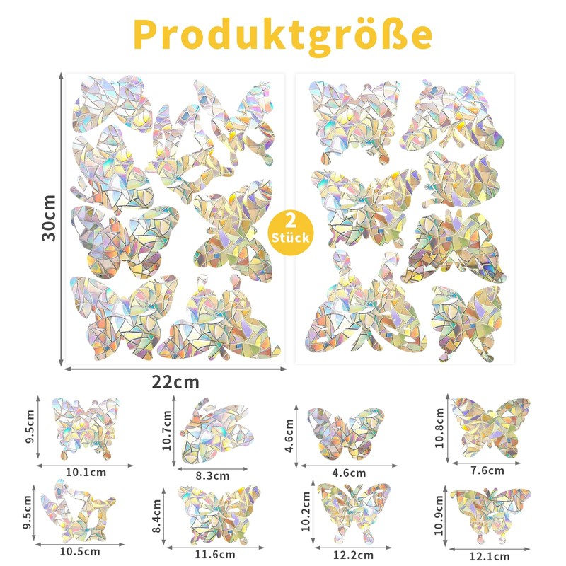 Package includes: 4 x sun catcher stickers (30 x butterfly suncatcher stickers).
