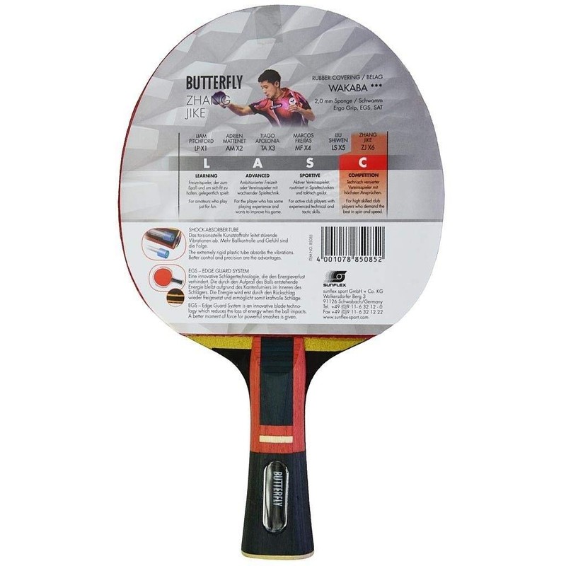 - With a sponge thickness of 2.0 mm, the Butterfly Zhang Jike ZJX6 TT bat has a very high speed because the thicker the sponge, the more pace and catapult it has and thus generates more spin.