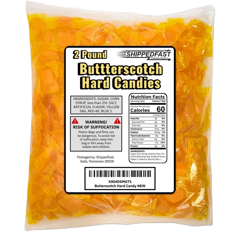 Butterscotch Hard Candies. (2 Pound Bag) of Individually Wrapped and Sealed Candy. (2 lbs.)