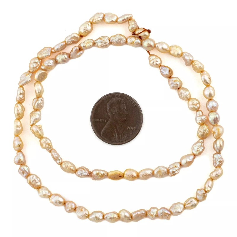 Photos may show multiple strands, however strands are sold individually. As these rice pearls hail from vintage Japanese stock, slight variations in size, shape, and color may occur, further adding to the charm and allure of your designs.