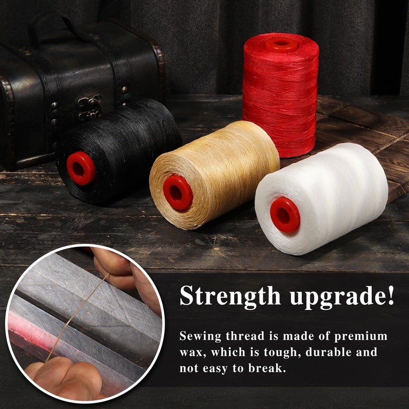 - WAXED LINEN THREAD: Our practical sewing supplies include different colors of wax thread, like black, natural color, white, and red, you can choose colors according to your needs.