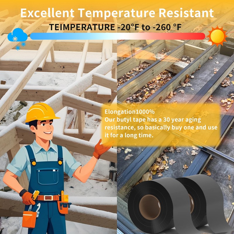 - Self-adhesive & Weather Resistance: Withstands temperatures from -20°F to 230°F, ensuring long-lasting flexibility and adhesion in harsh outdoor environments like roofs, decks, and sheds, easy to duct, stretch, sunlight, not easy to break and deform.