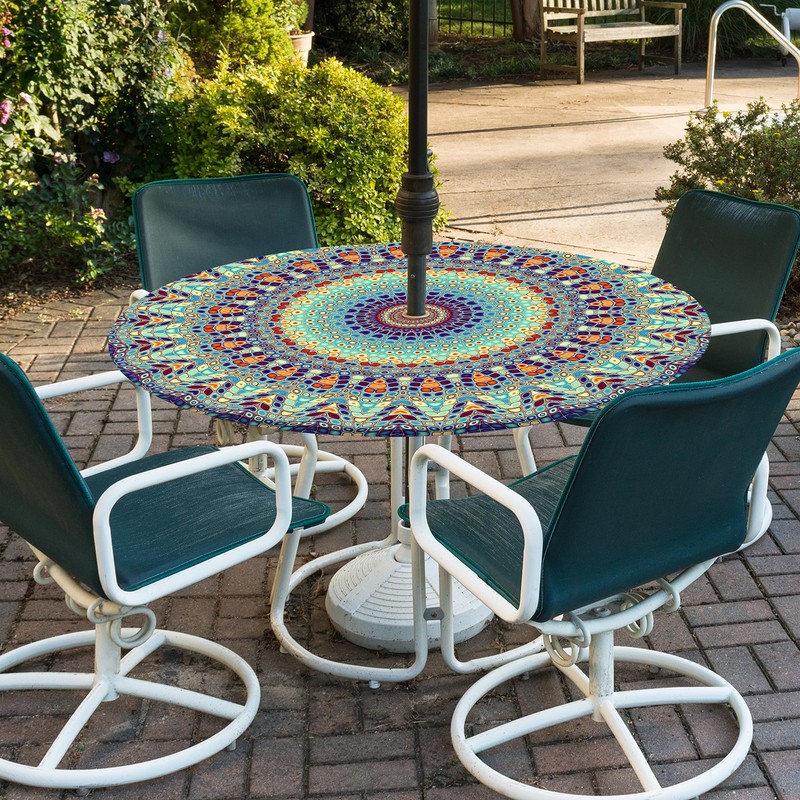 - Unique Elastic Edge : The outdoor round table cloth is thick and perfect fit for size 36"-54" round table, elastic corners hold well so effectively prevents tablecloths from sliding, falling off or being blown over by the wind, more secure, while don't worry about the tablecloth falling off and tripping people during use, increased safety in use.