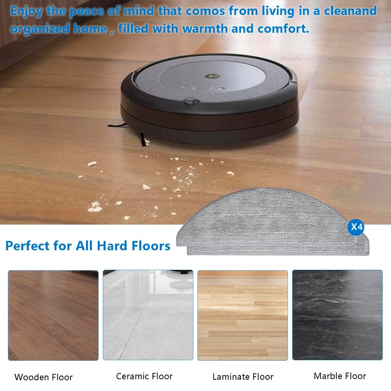 - 【Easy to Maintain】These combo i5,i5+, j5,j5+ mop pads are washable and reusable. They feature strong water absorption, high temperature resistance, no fading, and no lint, making them easy to dry. It is suggested to replace the replacement parts every 2-4 months to keep your robotic cleaner working with high performance. If the side brushes are bent or curled due to shipping, simply soak them in warm water for several minutes to recover their shape.