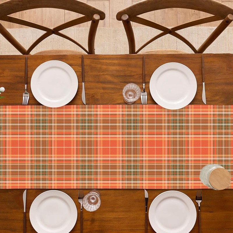 Buxiuer Fall Hawley Plaid Table Runner Orange Harvest Tartan Thanksgiving Decoration Seasonal Ckeckered Dining Room Home Kitchen Table Decor