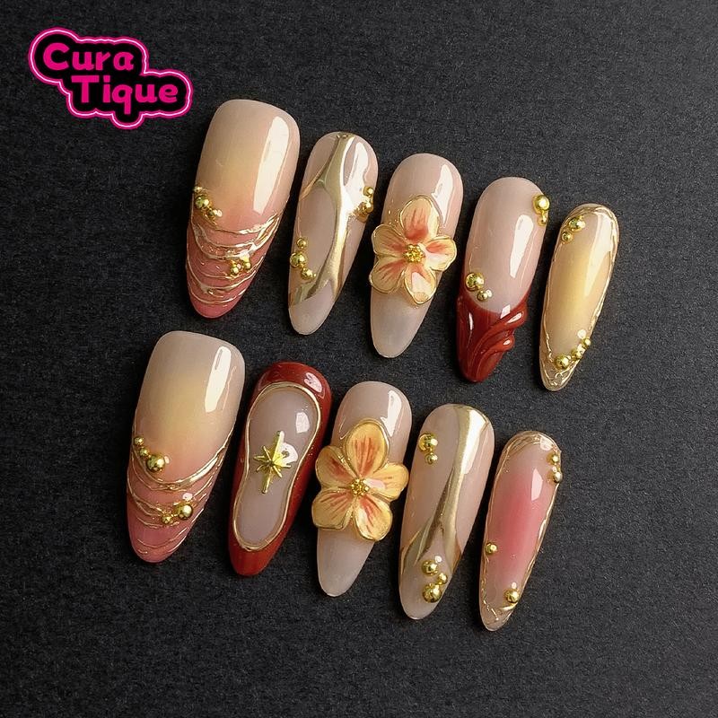 【Buy 3 get 1 free】CuraTique AUTUMN Collections 10PCS Handmade Press On Nails REUSABLE 3D Gel Autumn 2025 / Prom:_Halloween Whimsy_L