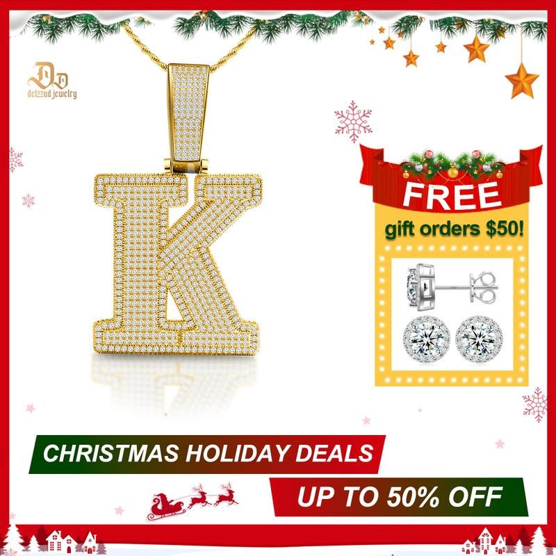 [Buy One Get Free Necklace] Delzzad Hip Hop Large Letter Zirconia Alphbet Pendant For Men - Color: Silver, Shape: F