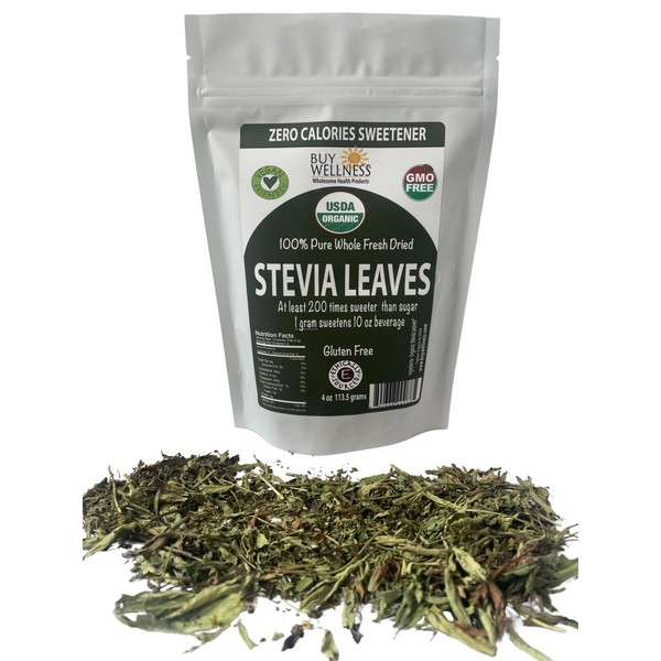 Buy Wellness Organic Stevia Leaf Pure Loose Leaf Stevia Shade Dried Low Bitterness 4 oz