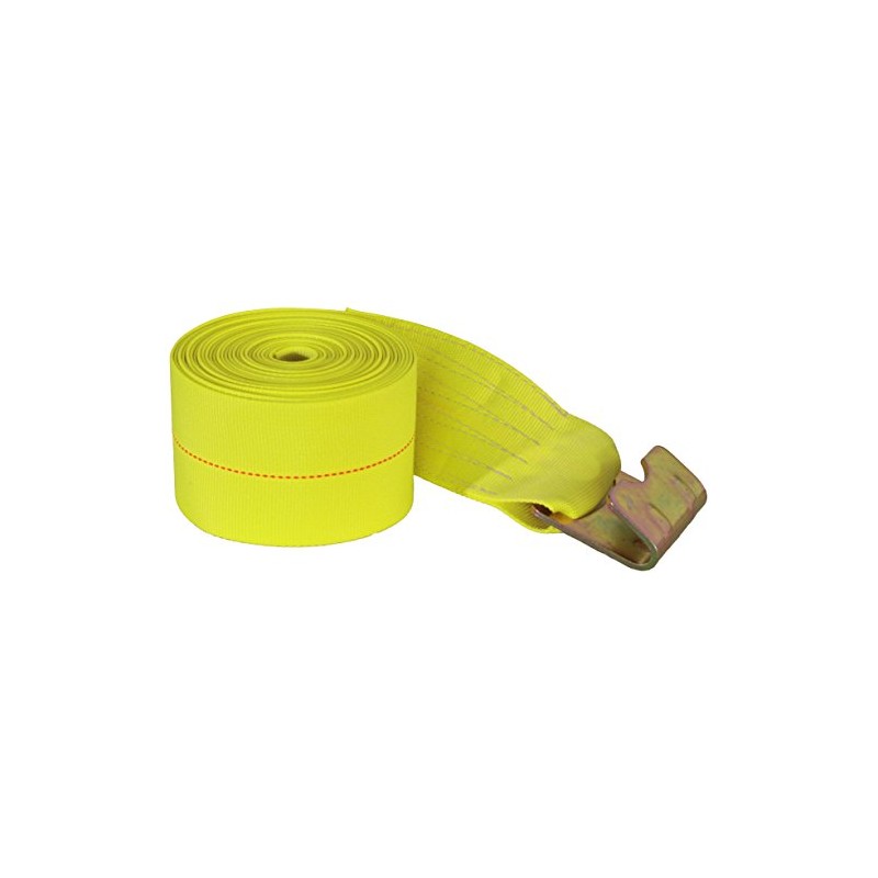 - 4-in x 27 ft Winch Strap: Ideal for flat bed trailers with mounted winches, this flat hook strap is made with high strength polyester webbing to assure long lasting use while safely securing your cargo