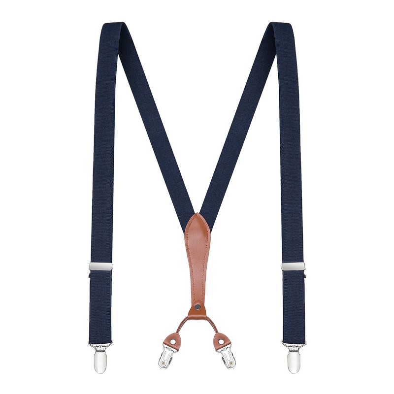 - STYLE AND DESIGN: These Y back men suspenders leather back Y design comes with 4 clips, and are made with the most comfortable elastic for daily comfort, and added leather crosspatch for that classic appearance.