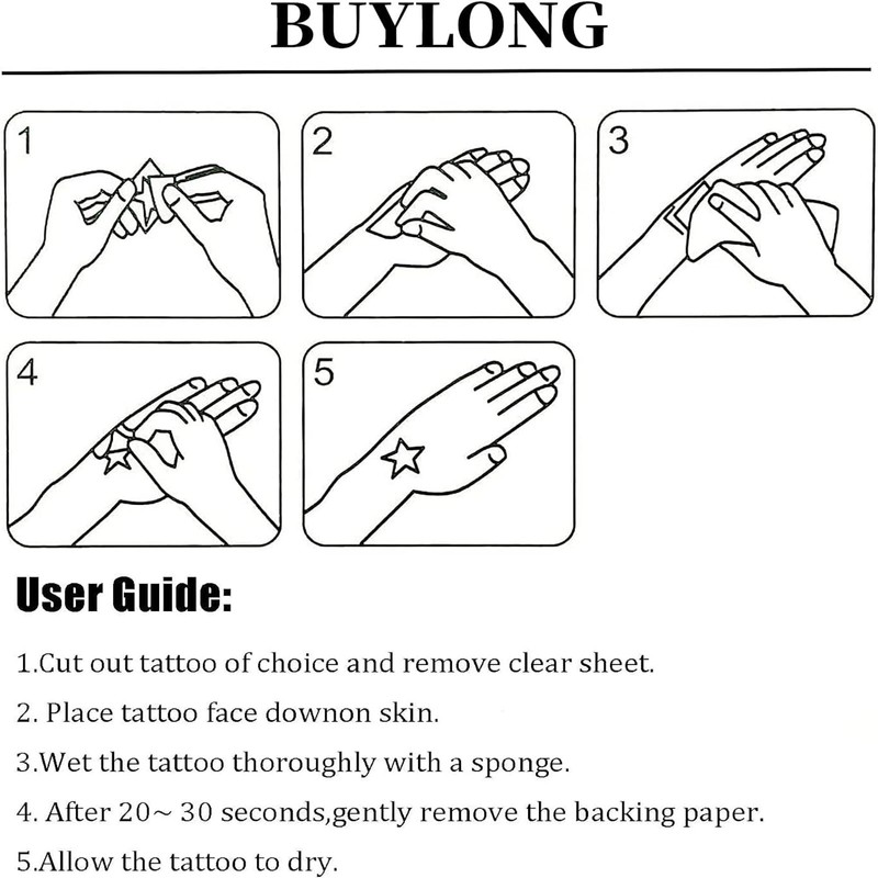 - Easy to Use: Put it where you want, Just place face down and dampen with water. Let stand for about 15 seconds, then remove and have done, these long-lasting tattoos usually last 3-7 days.