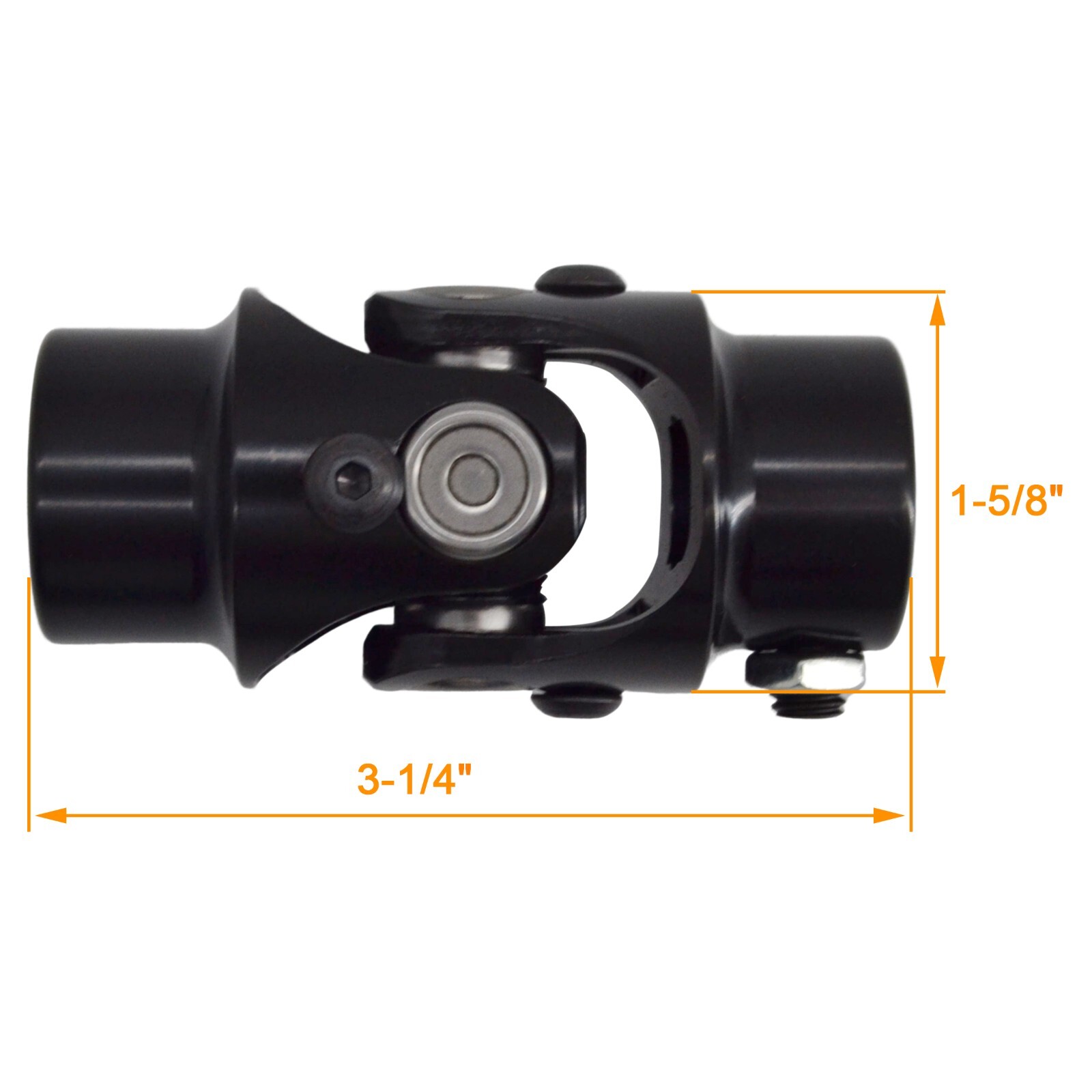 Steering U-Joint, Black Steel, 11/16-36 Spline X 3/4DD , 3-1/4" Overall Length, 1-5/8" Outside Diameter.