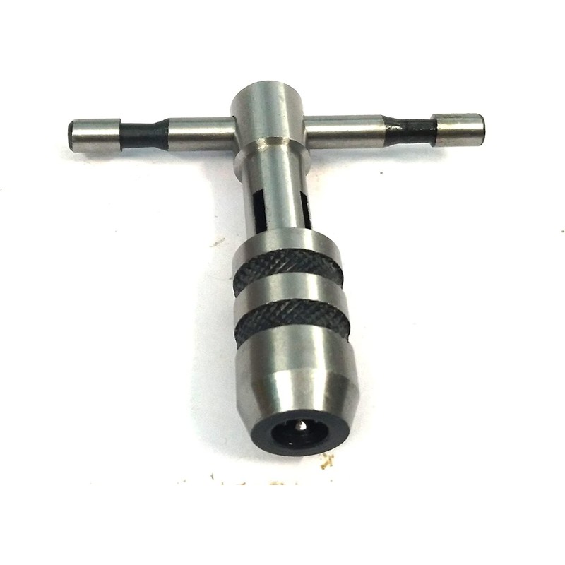 A T-handle tap wrench is a hand tool used in metalworking to manually turn taps (tools for cutting internal threads) into a workpiece. The T-handle design provides a comfortable grip and leverage for applying torque to the tap, allowing it to cut threads smoothly and accurately. This tool is commonly used when tapping small to medium-sized holes or when working in confined spaces where a larger wrench might be impractical.