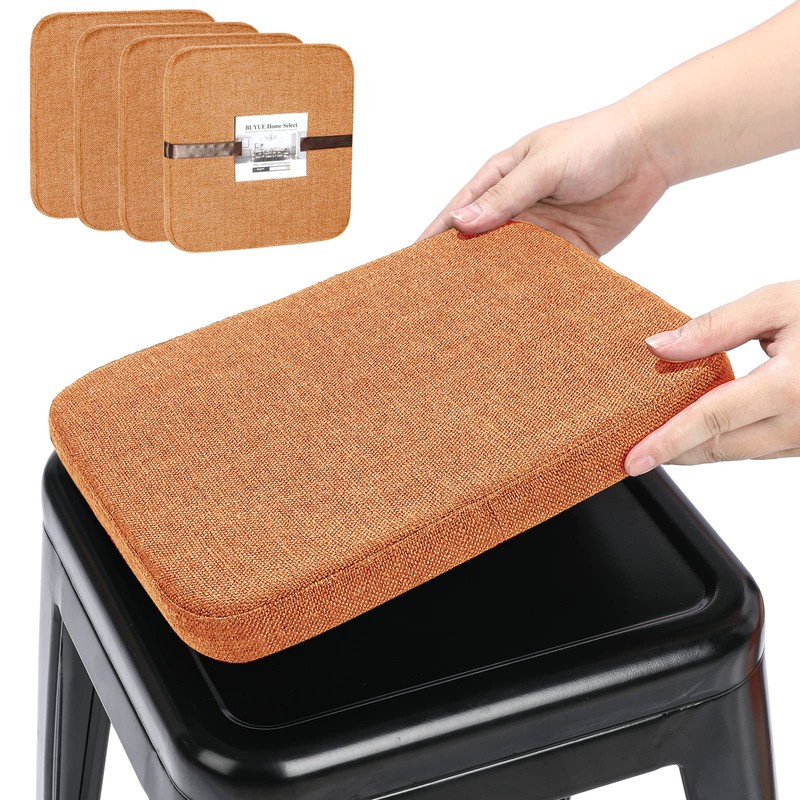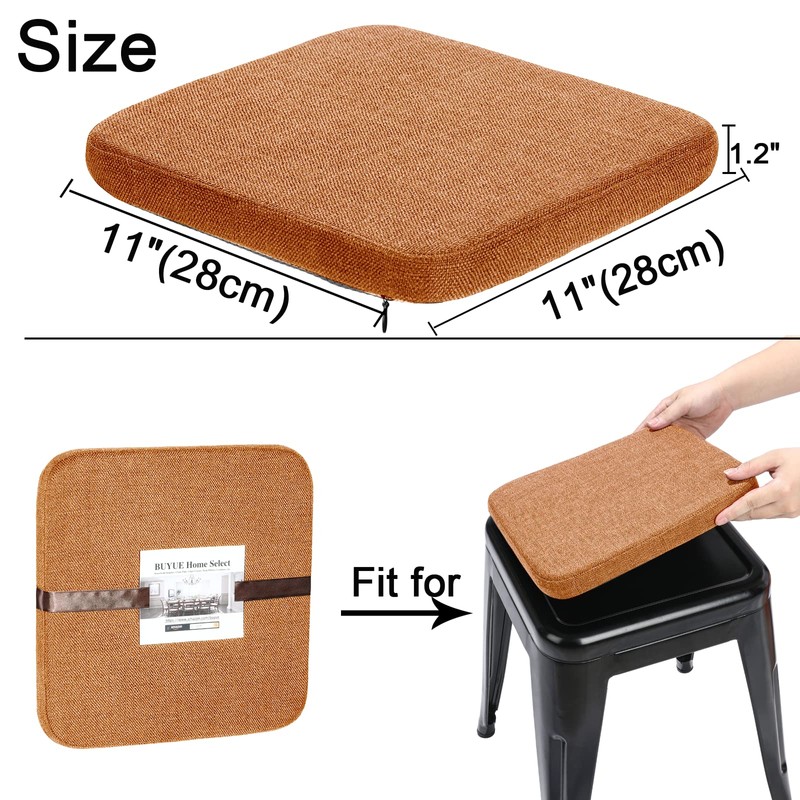 - ✦Product Details✦ 11"W x 11"D x 1.3"H, Please measure your stool chair size first. Include 4 pcs Square shape cushions. Surface: breathable Woven, Inside:32D Sofa Sponge + a piece of magnet, Bottom: Silicone Anti-Slip Fabric.