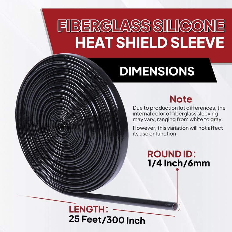 • Installation and application: easy to work and cut; protects wires, hoses, fuel lines from high temperatures; please note that this Fiberglass Heat Shield Sleeve does not protect against exhaust or turbo temps, so proper routing of wiring is essential