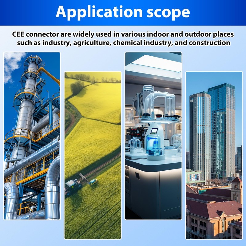 - Application: CEE connectors are widely used in various indoor and outdoor areas such as industry, agriculture, chemical industry and construction.